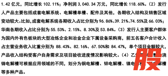 公司是一家专注于为有色金属冶炼行业提供电解系统整体解决方案的国家高新技术企业,公司主要产品与服务为乙烯基树脂整体浇铸电解槽、成套电解系统和配套的集成电解/电积工艺服务等。公司集研发、制造、销售为一体,产品广泛应用于国内大型冶炼企业和上市公司,是国内首家通过中国有色金属工业协会科技成果鉴定的新型乙烯基树脂整体浇筑电解槽研制企业,亦是国内电解槽领域领先推出整体方案的电解系统集成供应商,公司的“整体浇筑乙烯基树脂混凝土电解槽”入选“浙江制造”标准认定。公司亦入选了工业与信息化部专精特新“小巨人”企业,是电化学冶金电解设备行业的创新型企业。公司客户主要集中于有色板块的大中型国企、央企和民营企业,如江西铜业、云南铜业、中铁资源、北方工业、紫金矿业、中铝集团、豫光金铅、南国铜业、盛屯矿业(维权)、洛阳钼业、赣锋锂业、中伟股份、滕远钴业、飞南资源等。同时,公司产品成功出口至哈萨克斯坦、英国、沙特、缅甸、刚果(金)等多个国家和地区,产品广泛应用于铜、锌、镍、锰等有色金属行业。