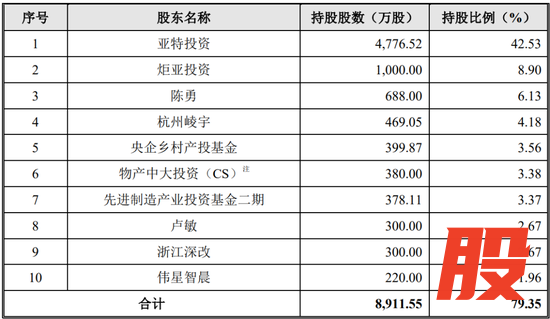 陈勇直接持有公司6.13%的股份。同时,陈勇持有亚特投资100.00%的股权,持有炬亚投资59.62%的出资额且为执行事务合伙人,陈勇直接持股并通过亚特投资和炬亚投资合计控制公司57.57%的股份并担任公司董事长,系公司实际控制人。