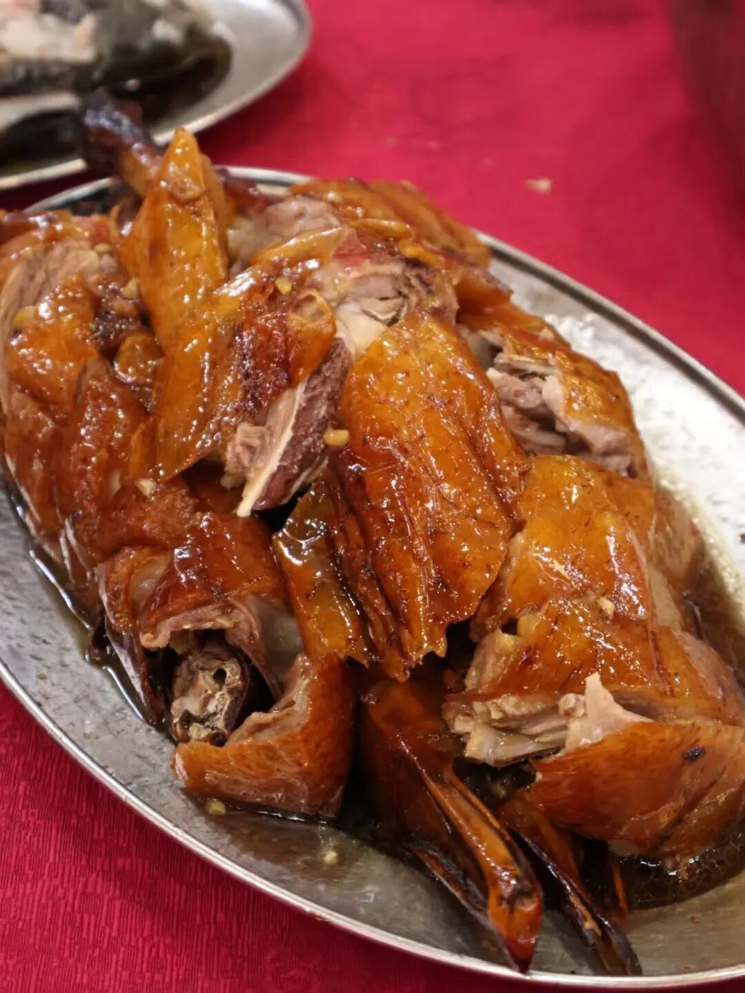 同炉烧出的叉烧蘸着带有陈皮香的烧鹅汁,更添清甜;卤水鹅杂带来更复杂的味觉体验;再点一碟杜阮凉瓜解腻,这滋味令多少新会人难以忘怀。