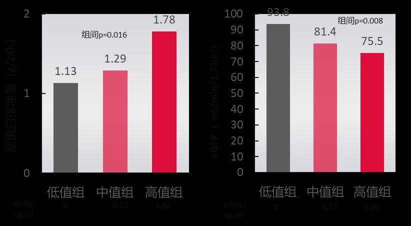 图 3 血浆 APRIL 水平与尿蛋白严重程度及 eGFR 水平关联[8]