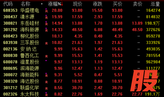 化工板块今日再度活跃,磷概念、有机硅、氟概念等表现亮眼。截至收盘,华盛锂电20%涨停续创新高,东岳硅材、海科新源涨超14%,三孚股份、安纳达、鲁西化工等涨停,澄星股份斩获3连板,天际股份连续两日涨停。